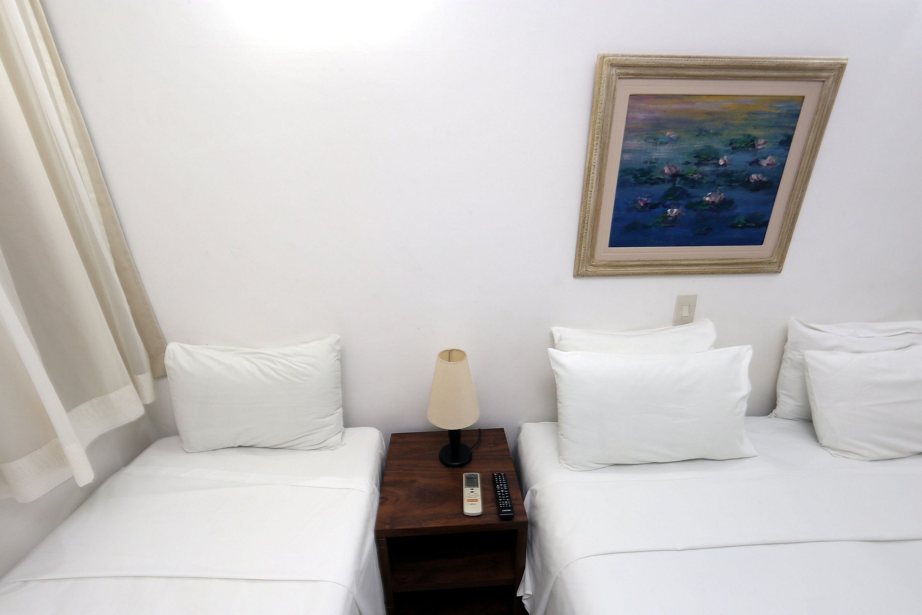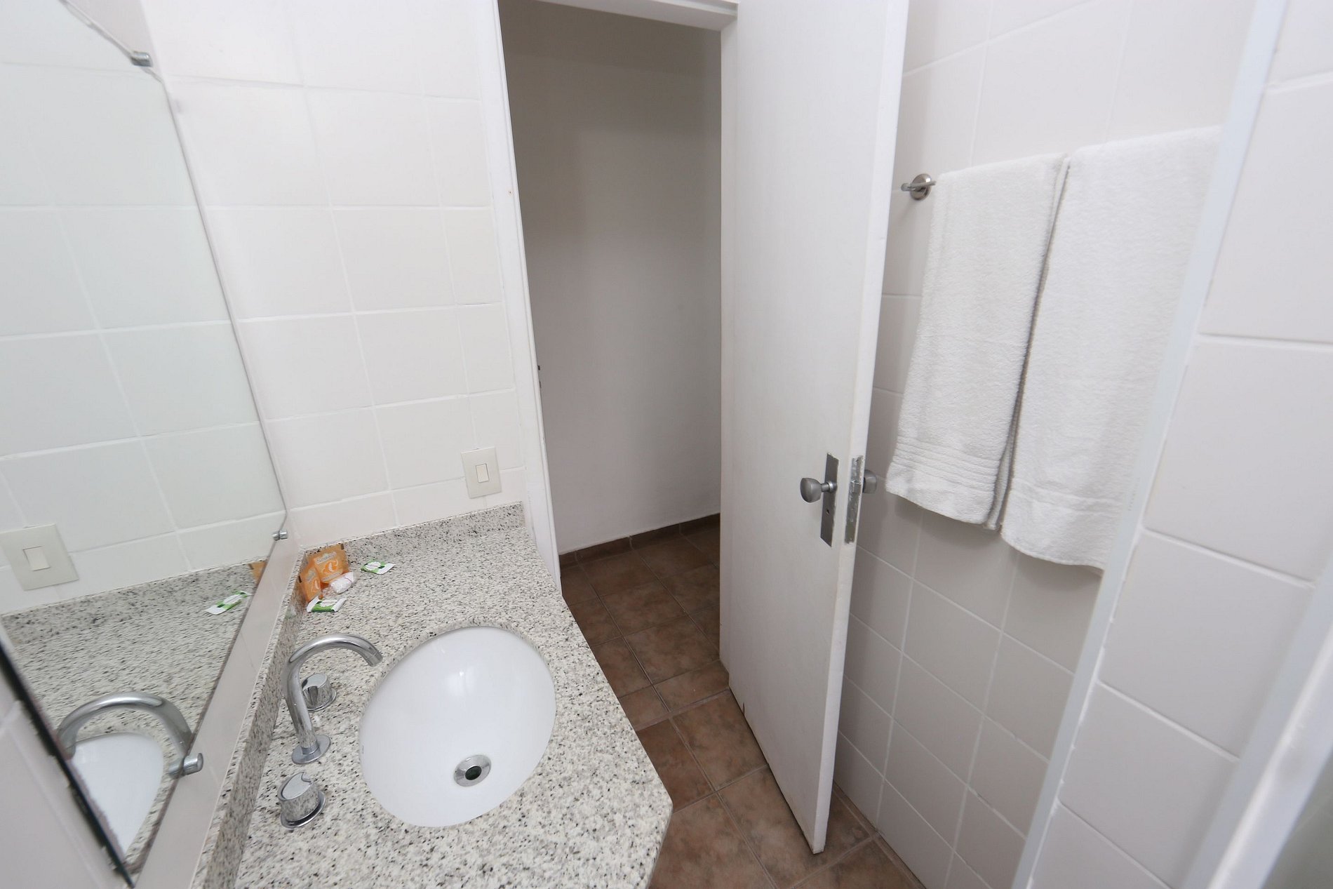 Quarto confortável, localizado dentro do condomínio do hotel Delphin. Acesso a aérea de lazer do hotel como piscina e serviço de praia (guarda-sol e cadeiras). Dispõe de 01 cama de casal, 01 cama de solteiro, 01 toalete, ar condicionado, TV a cabo, frigobar e uma vaga de estacionamento cortesia. Inclui enxoval e arrumação diária.